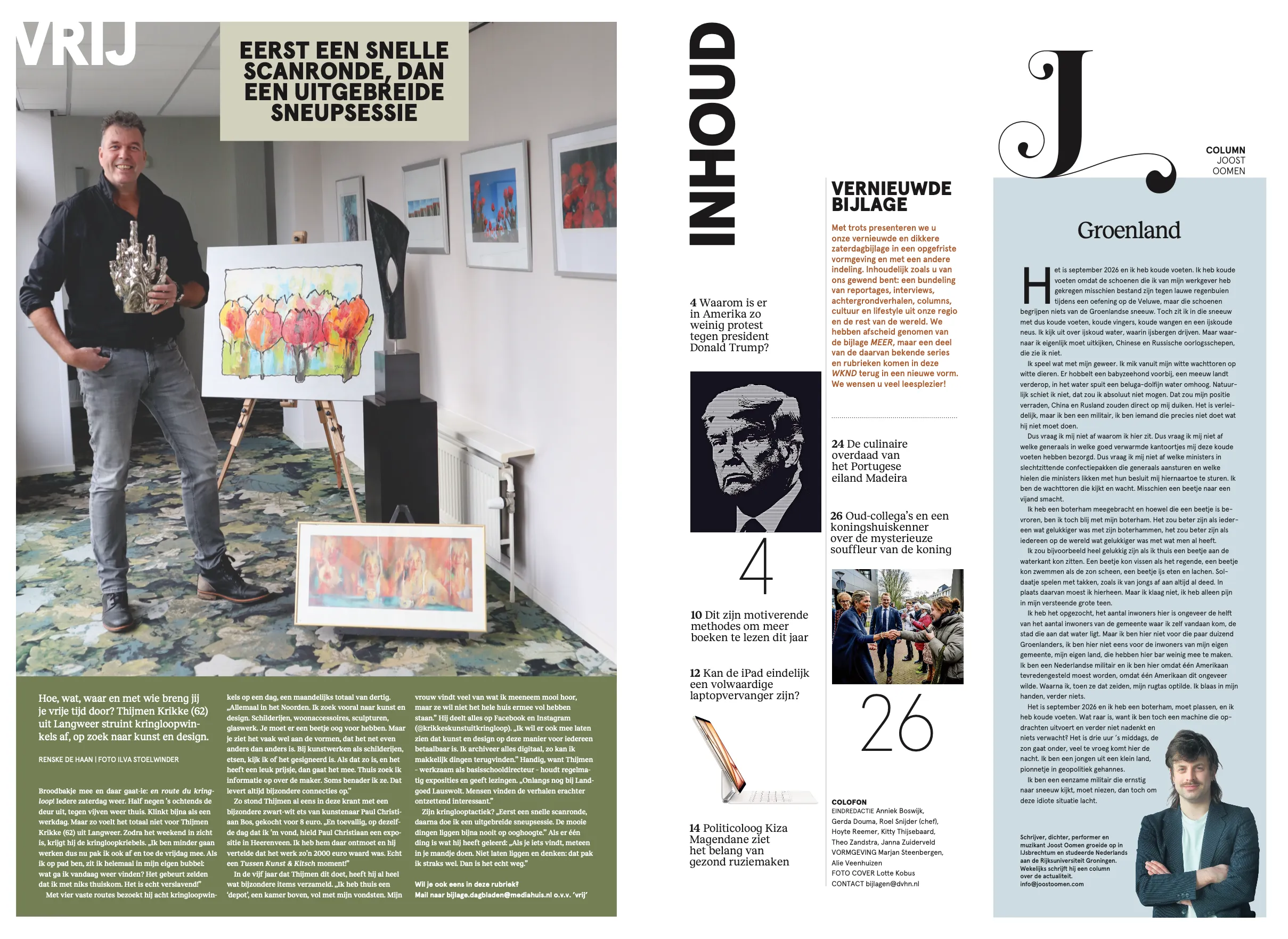 WKND is de vaste lifestyle- en cultuurbijlage van DVHN en LC. Een moment om rustig te lezen, te ontdekken en geïnspireerd het weekend te beginnen.